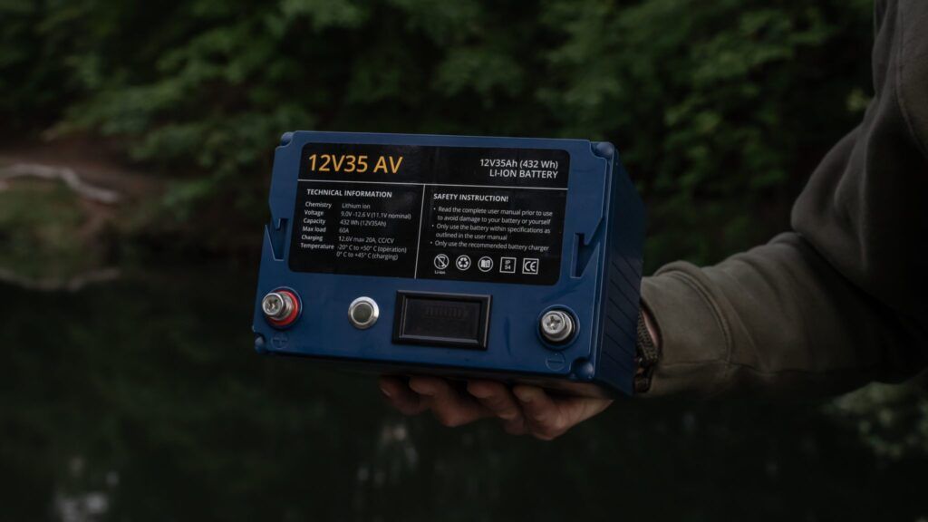Kompakte, robuste und leichte Outdoorbox 12.35 AV. Dank des robusten, stoßfesten und wasserdichten Gehäuses ist diese Outdoorbox ideal für den Einsatz beim Kajak-, Bellyboot- und Karpfenangeln. Die 12.35 AV Outdoorbox hat eine integrierte 12V35 Ah Lithium-Akku, is wasserdicht (IP65), wiegt nur 3.7Kg und verfügt über eine digitale Ladestandsanzeige.