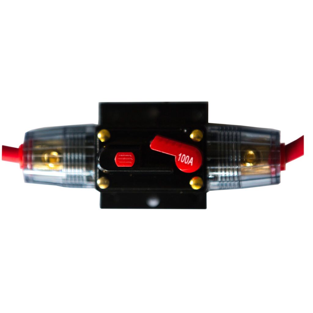 Câble de connexion avec fusible réinitialisable pour la connexion en un clic d’un moteur électrique de 24V. Destiné à connecter la batterie li-ion Rebelcell 24V100 à un moteur électrique de 24V avec une consommation d’énergie entre 60A et 100A.