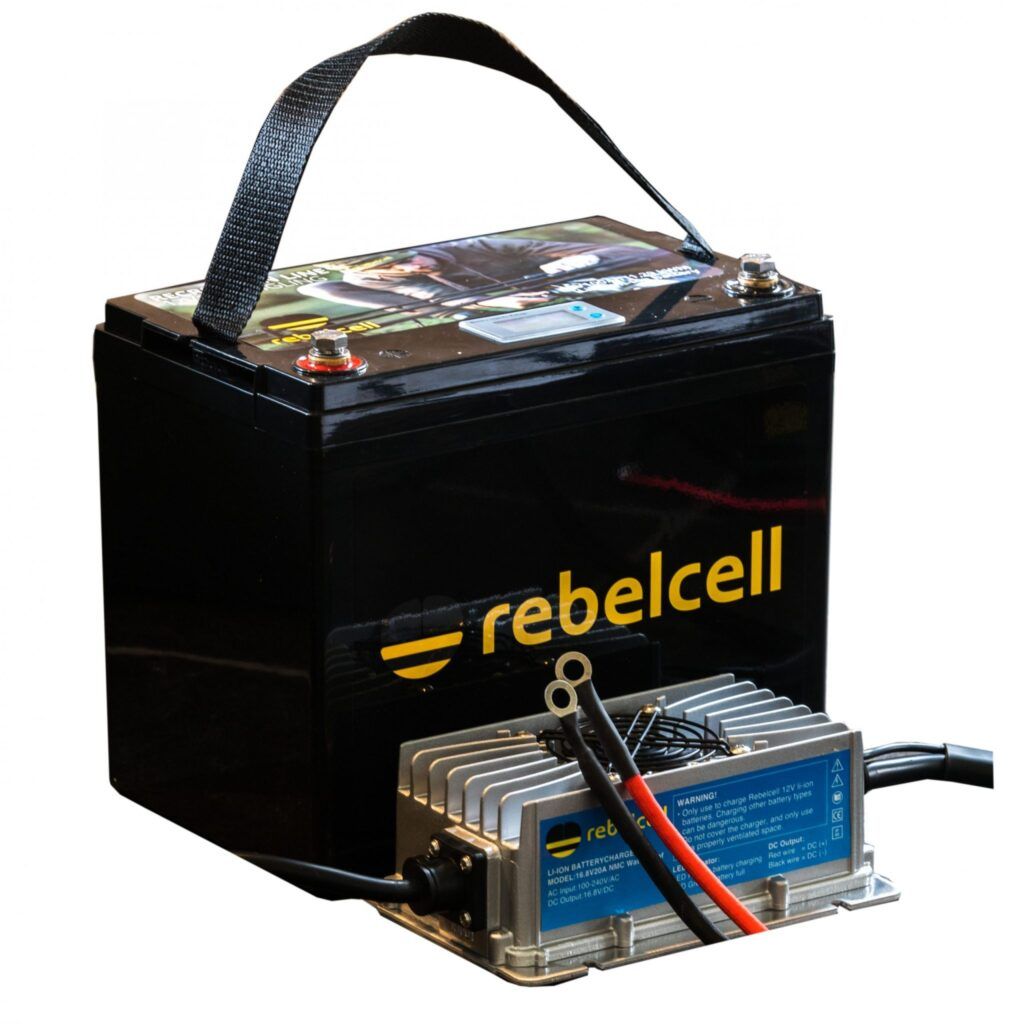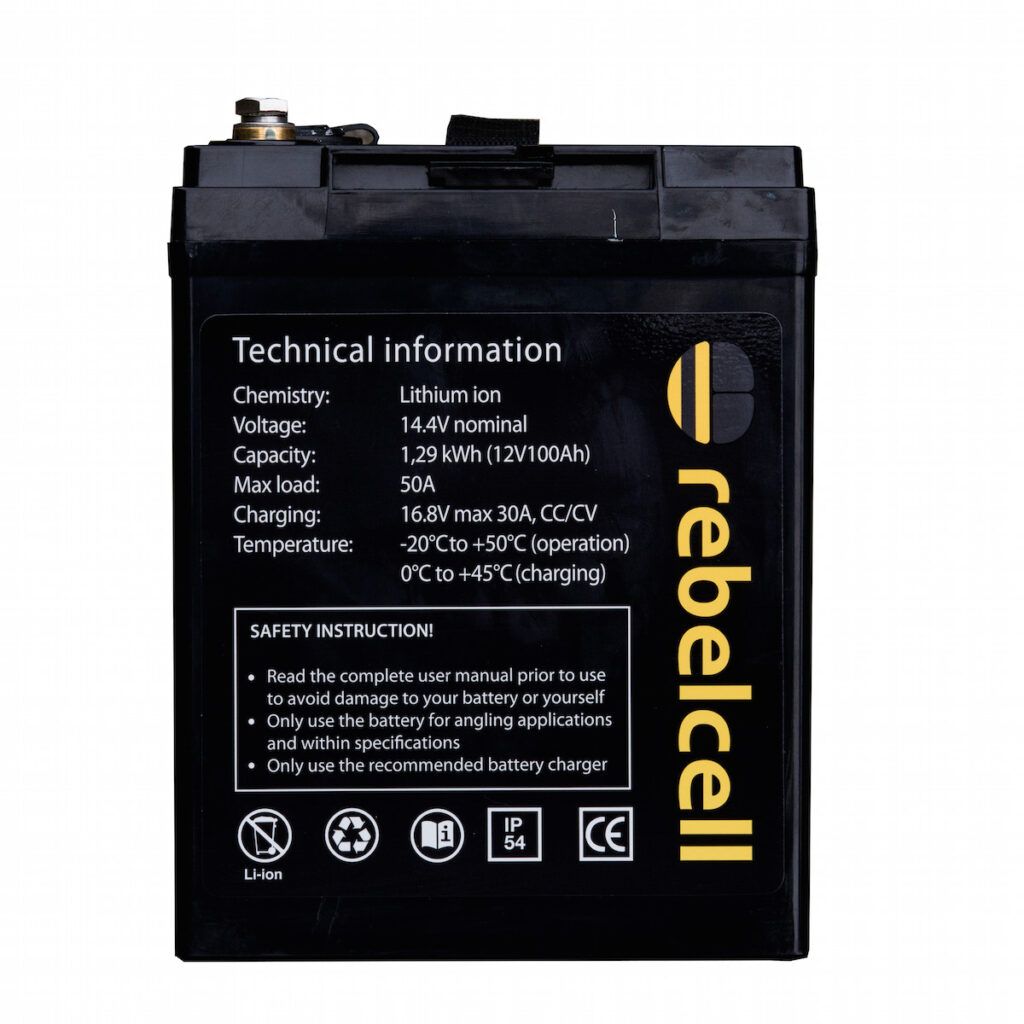 12V100 li-on battery with digital charge state of charge indicator. Drop in replacement for two lead-acid batteries of 12V105Ah.