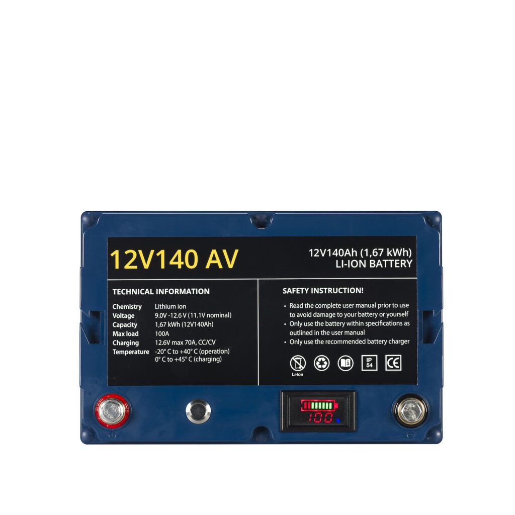 Compact and lightweight 12V140 AV Lithium Battery that runs on 12V, has an output of 140Ah (1.67kWh) and weighs only 10.5Kg. This battery can be used for: