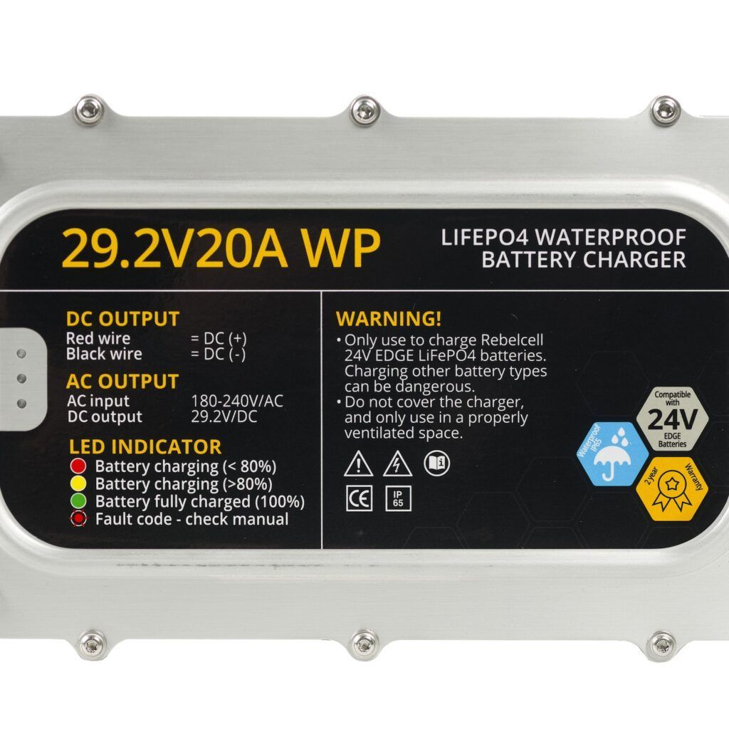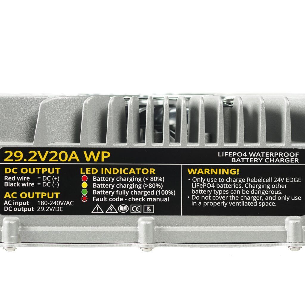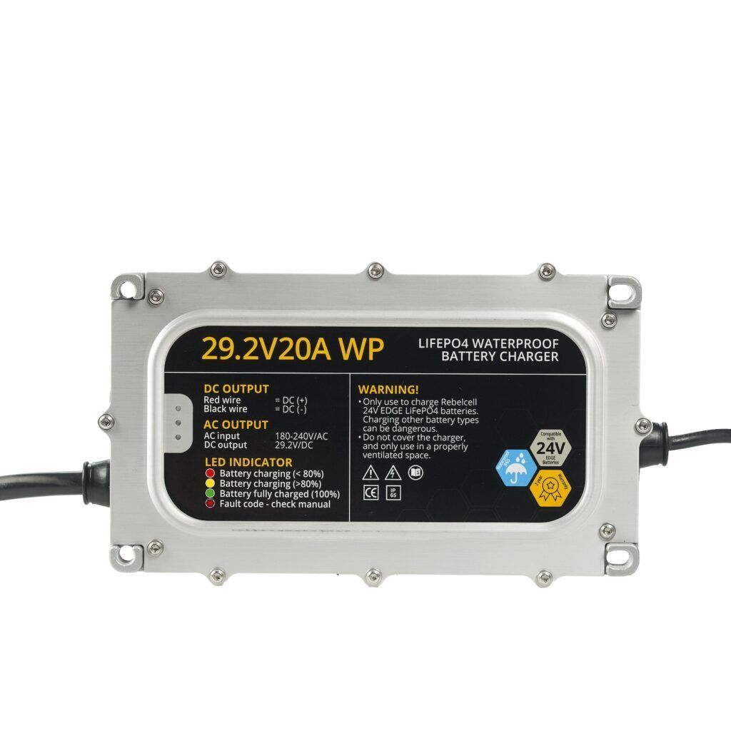 PRODUCT DESCRIPTION REBELCELL 29.2V20A LiFePO4 battery charger (IP65) waterproof