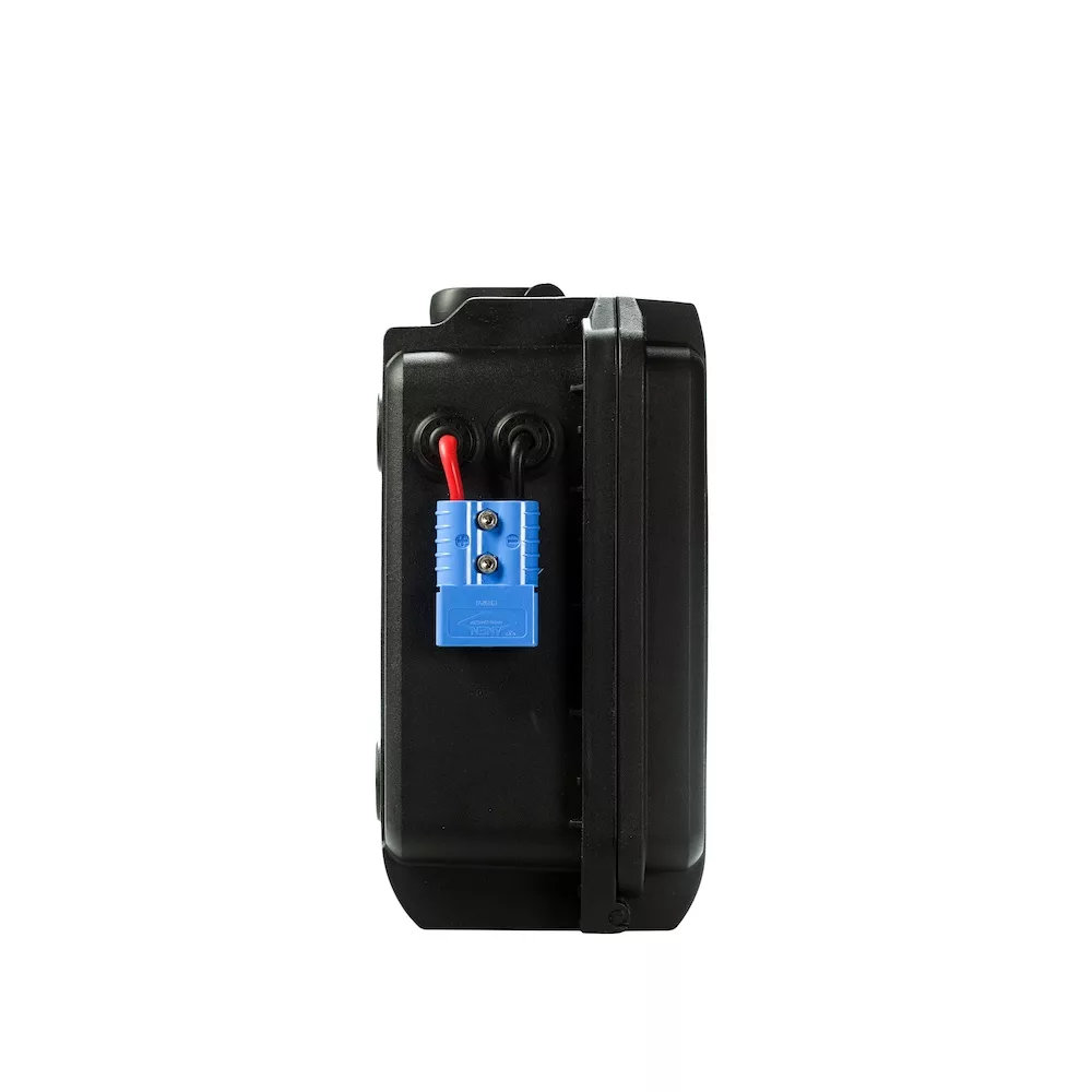 - Connectors / Ports: ANEN Blue 100A connector, 1x 12V stabilized output, 1x USB-A (QC 3.0) , 2x USB-C (PD-charging) for super fast charging.