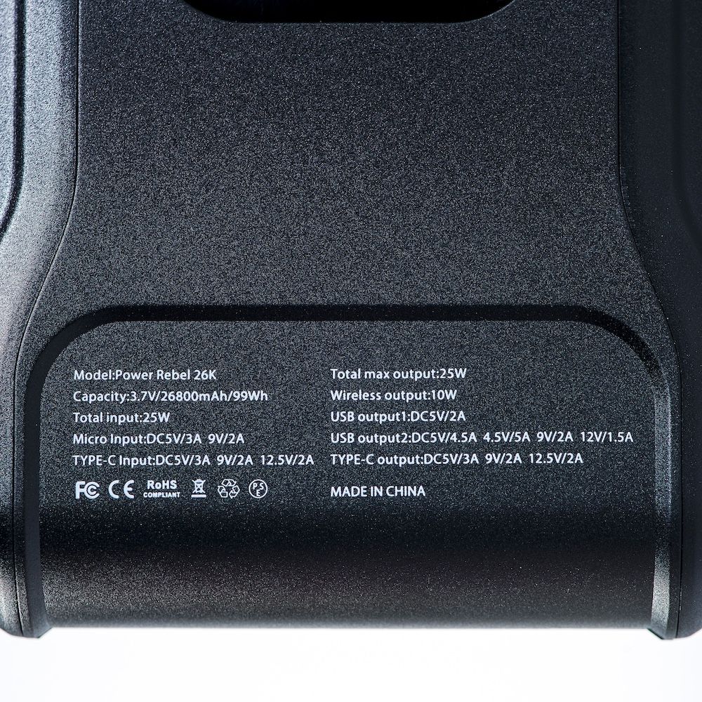 The Power Rebel 26K is a high capacity (26800 mAh / 99 Wh) solar power bank for outdoor use. It simultaneously charges up to 3 devices via the 1x standard USB-A and 1x USB-C / 1x USB-A fastcharge outlets. With this powerbank you can charge your tablet 3 times and your phone up to 9 times! The Power Rebel 26K features;